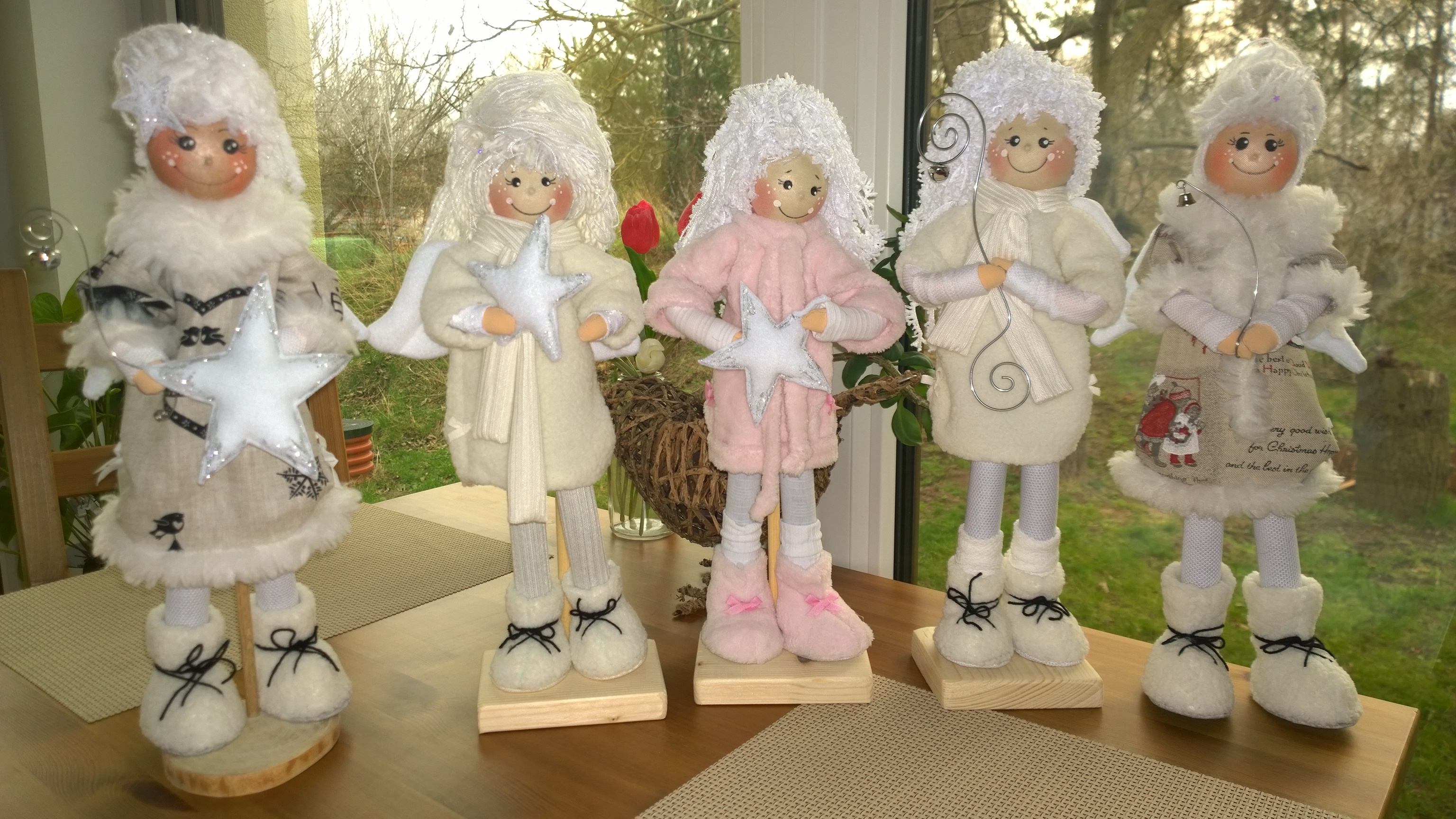 andělky volně stojící na podstavci...v nožičkách mají drátek, lze ohýbat
