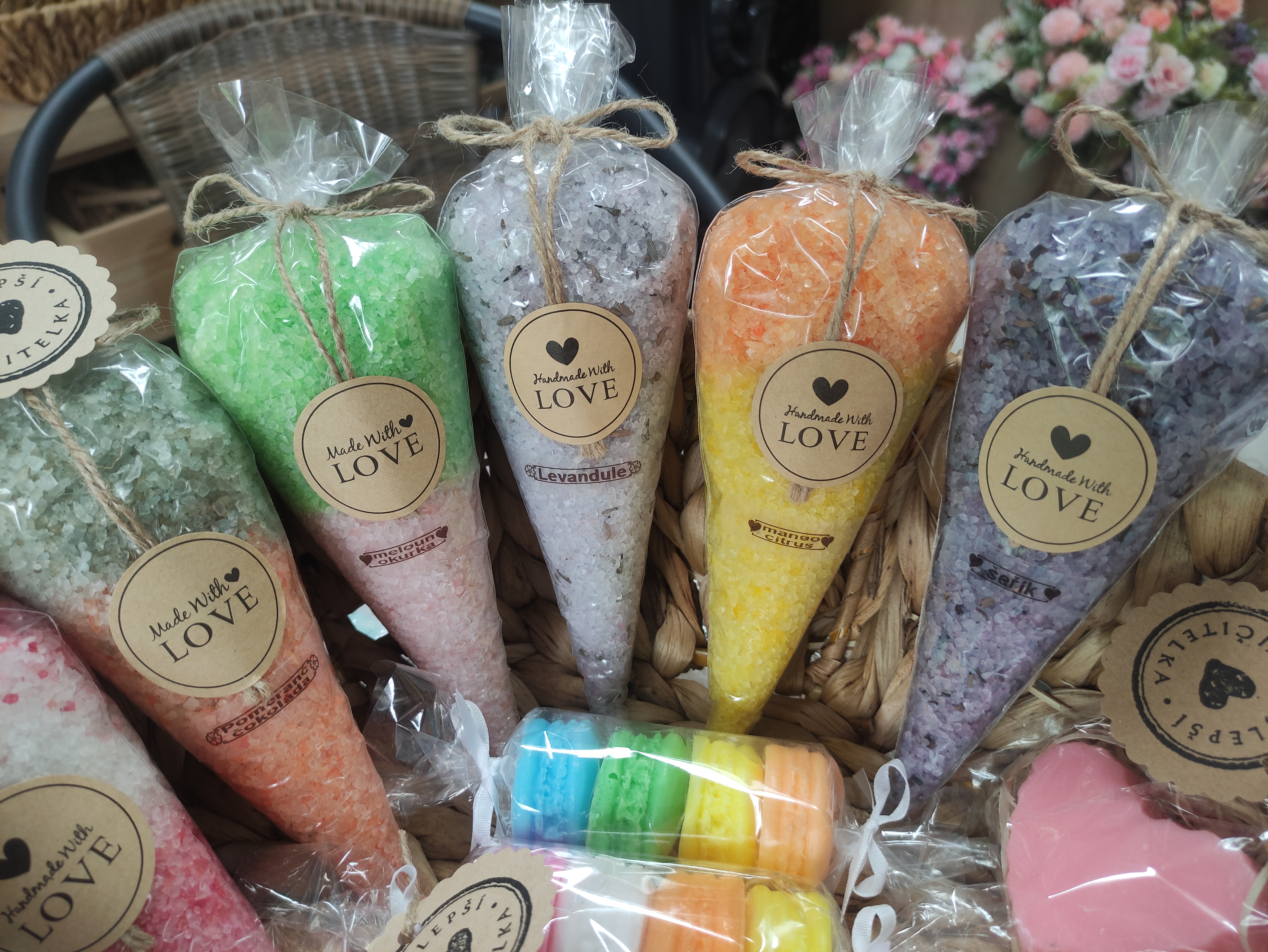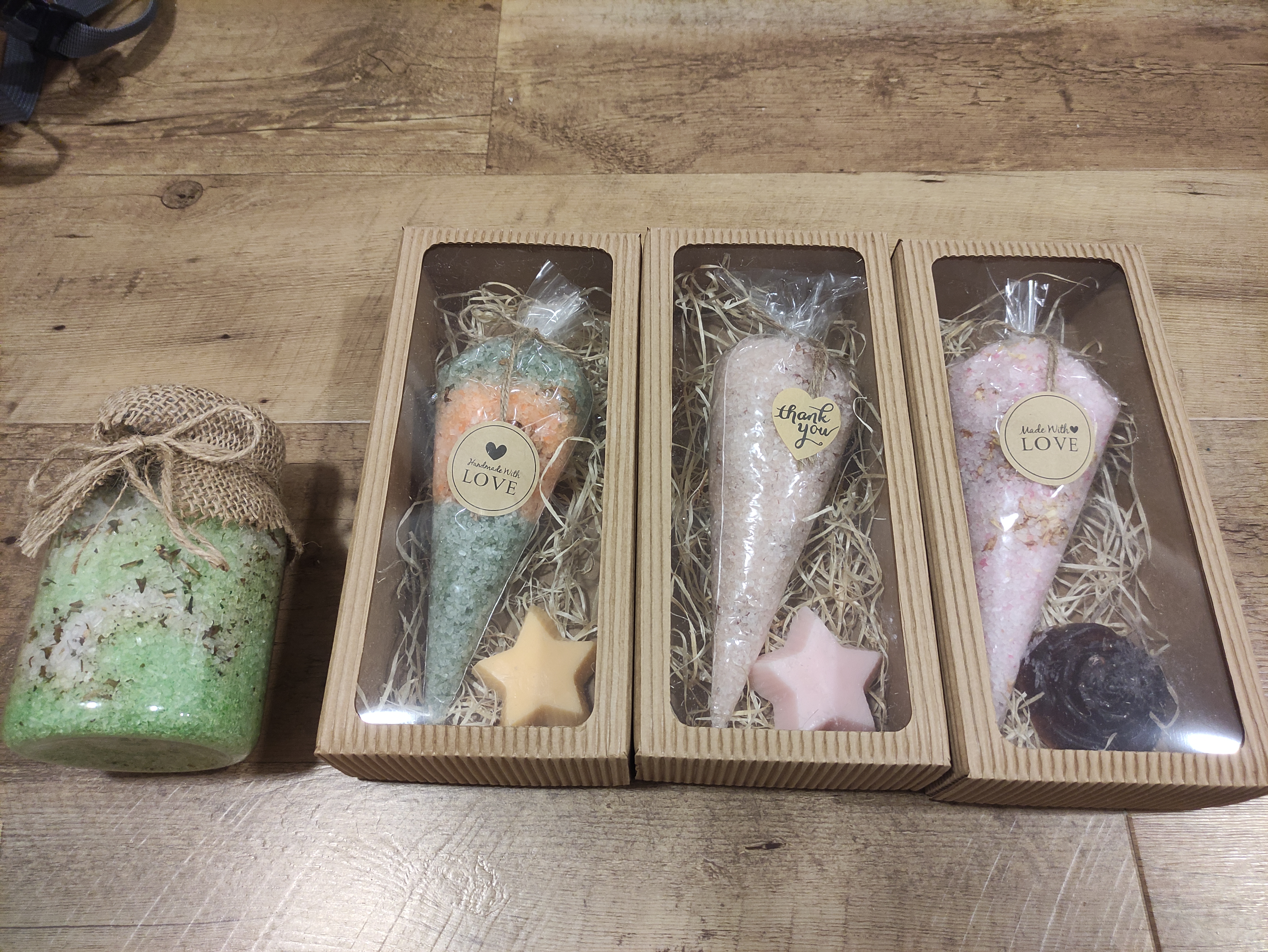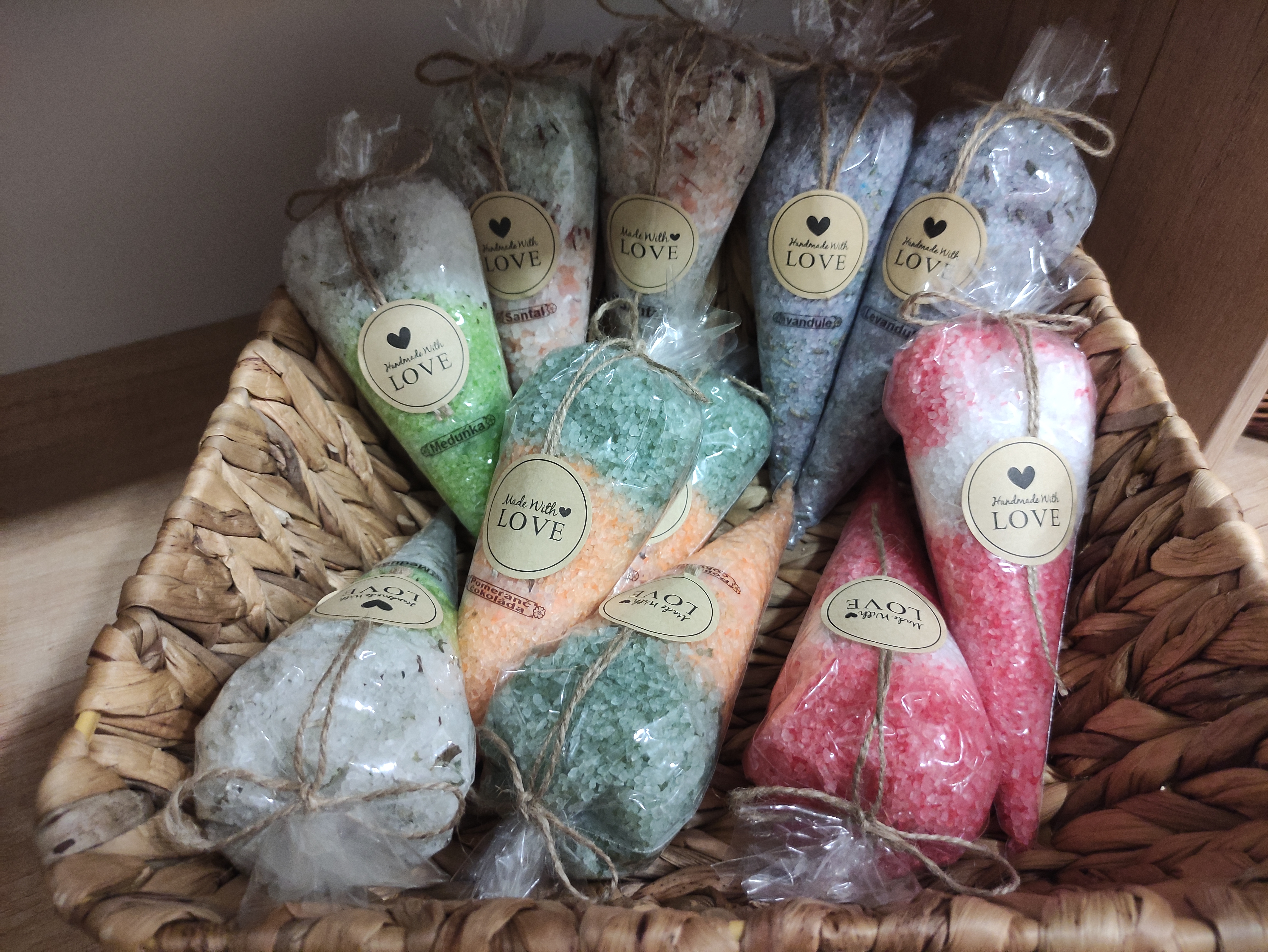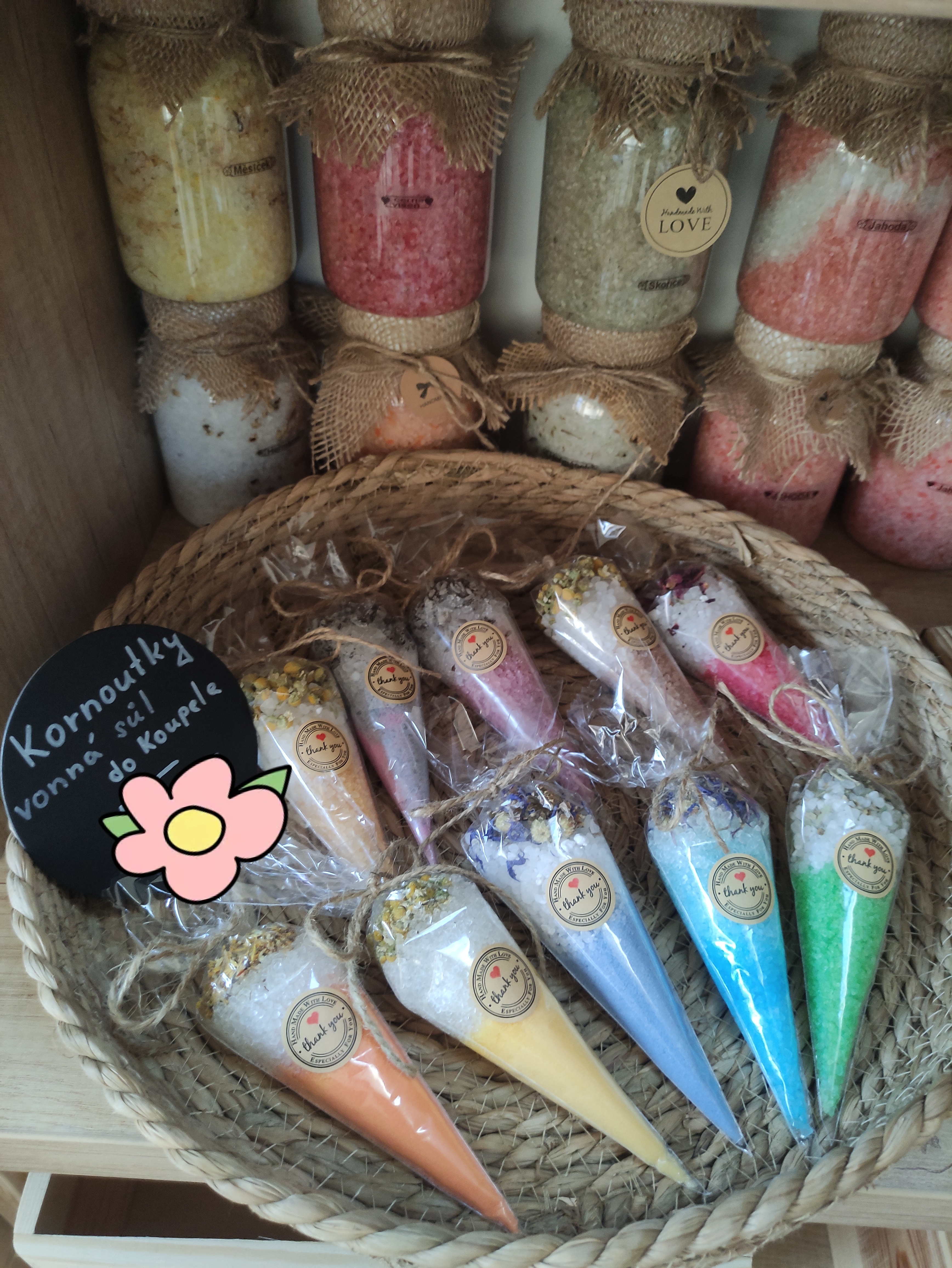 Koupelová sůl, v nabídce mám několik druhů...malé kornoutky, velké kornoutky, sůl v dóze...